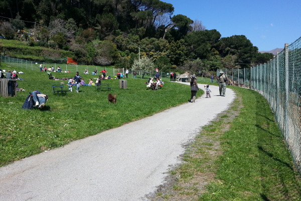 Nella nuova e riqualificata fascia di rispetto di Genova Prà, un piccolo parco giochi, con pista cicabile! Mezzo pubblico consigliato: treno o autobus.