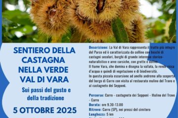 Domenica 5 ottobre 2025 escursione gratuita ad anello a Carro (SP), tra castagneti secolari, borghi storici e il mulino del Travo, in occasione della Giornata dei Sentieri Liguri.