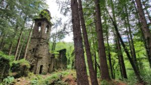 Dopo circa 30 minuti di cammino arriviamo a quel che resta delle rovine di un’antichissima chiesa immersa in questo bosco davvero magico. Sono ancora visibili il campanile, la parte dell’abside e i muri perimetrali, tutto avvolto da una lussureggiante vegetazione e da un alone di mistero.