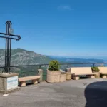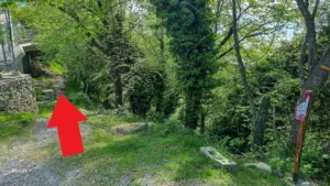 Il Santuario di Monte Croce, a 756 metri d’altitudine, non è solo un punto di partenza: è già di per sé un piccolo luogo di pace. Il sentiero inizia alla destra della cancellata principale. I segnavia da seguire sono chiari: un quadrato rosso vuoto e un simbolo rosso-giallo del Sentiero delle Terre Alte.