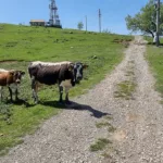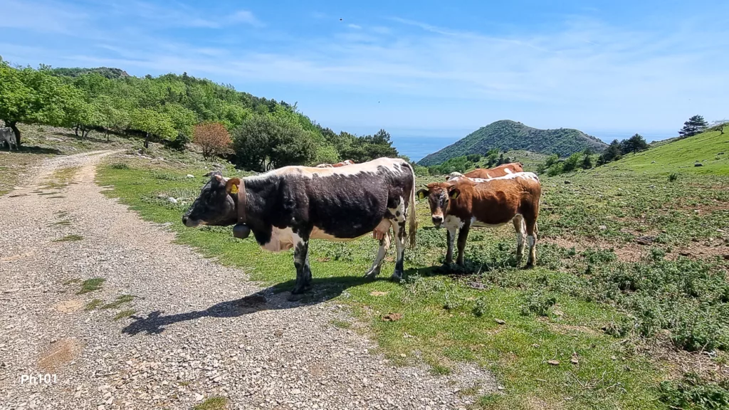 In cima vi aspettano una cappelletta-riparo, una croce e… le mucche al pascolo. Sì, a volte sono lì, tranquille, a guardare l’orizzonte meglio di noi.