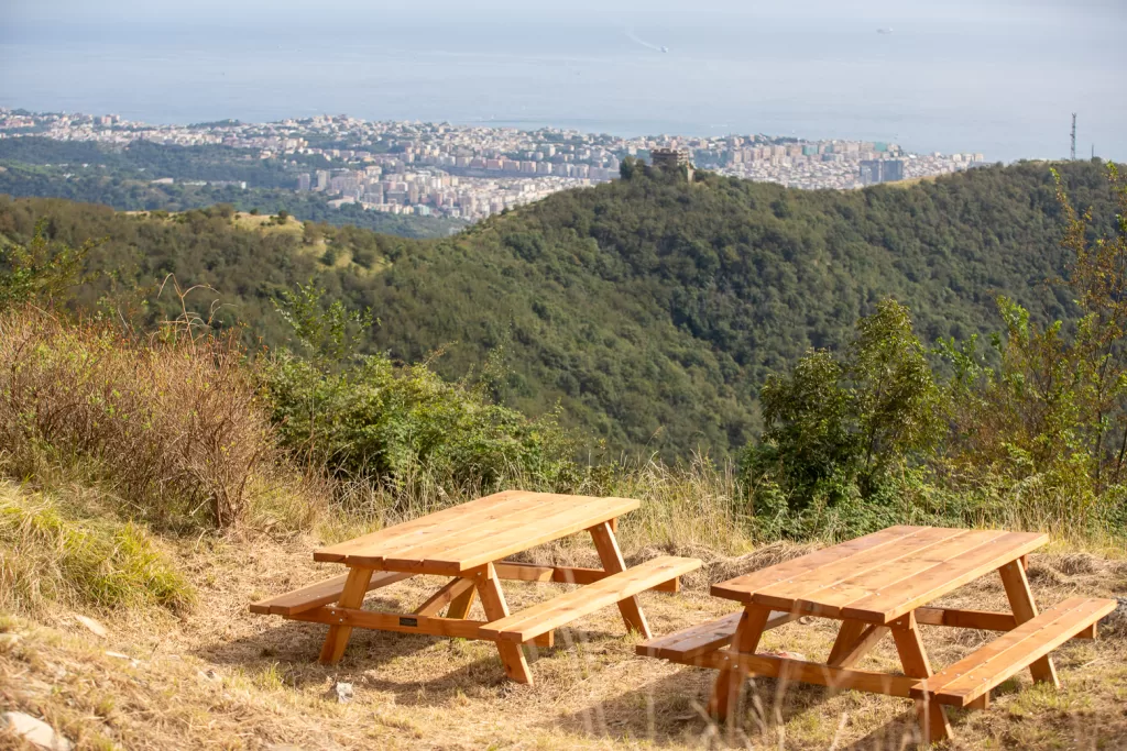 Dopo circa 20 minuti di lieve ascesa, in vista del Forte Fratello Minore, arriverete al punto più bello dell’intera escursione: un belvedere terrazzato da cui si gode una vista a 360 gradi sul Golfo di Genova.