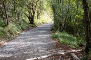 La strada prosegue attraverso un bosco, inizialmente in piano. Poi comincia a salire, offrendovi una camminata piacevole immersi nella natura.