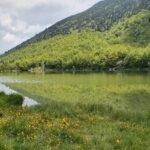 Sulla sponda opposta al vostro punto di arrivo troverete una piccola radura con 2 tavoli da picnic, dove potrete sostare e rifocillarvi. I più preparati di voi, ma non i bambini, volendo, potranno cimentarsi nell’ascesa del soprastante Monte Nero, che dà, appunto, il nome al lago che, per dispetto, è clamorosamente…verde!