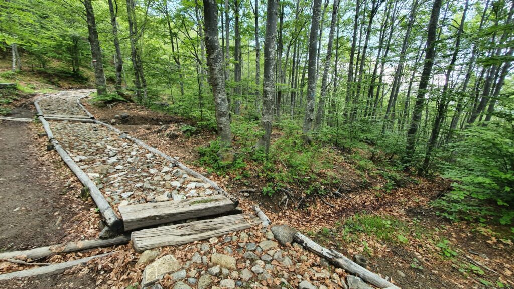 Vi inoltrerete quindi nel bosco, attraverso un sentiero ottimamente segnalato e contrassegnato da un riga rossa e una bianca, orizzontali. Nei mesi estivi, il fresco che questo curatissimo bosco, complice anche l’altitudine, vi regalerà, è davvero impagabile.