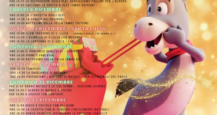 La proposta natalizia alterna attività motorie, momenti creativi e interazioni con gli animali, offrendo ai più piccoli occasioni per muoversi, sperimentare e vivere il parco come un grande spazio didattico. Tra le novità dell’anno figura anche AsinOlla Horse Academy for Kids, un percorso dedicato all’avvicinamento all’equitazione attraverso gioco e ippomotricità.
