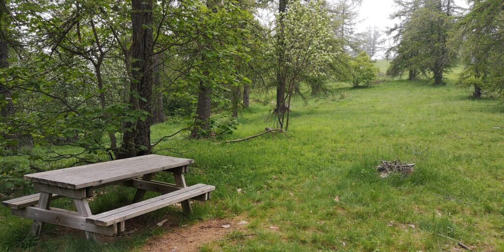 Dopo altri 10 minuti circa arriverete in un’area picnic con tavolo e un bel prato.