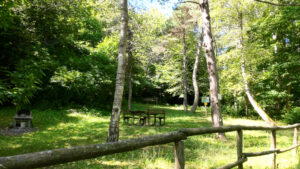 Dopo il ponte, un secondo piccolo ponticello attraversa un emissario: anche qui si prosegue dritti. Subito dopo, si apre sulla sinistra una freschissima area picnic, immersa tra gli alberi.