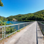 Poco più avanti si raggiunge il Ponte Manfrin, probabilmente il punto più panoramico della passeggiata: vale la pena attraversarlo, scattare qualche foto al centro, ammirare i due versanti del lago, e poi tornare indietro sulla stessa sponda per proseguire.