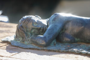La scultura si trova sulla banchina Ideale Capasso e raffigura una figura marina che sembra riposare guardando il porto. È uno di quei dettagli che spesso sfuggono a chi passa velocemente, ma che può diventare una piccola scoperta per i bambini.