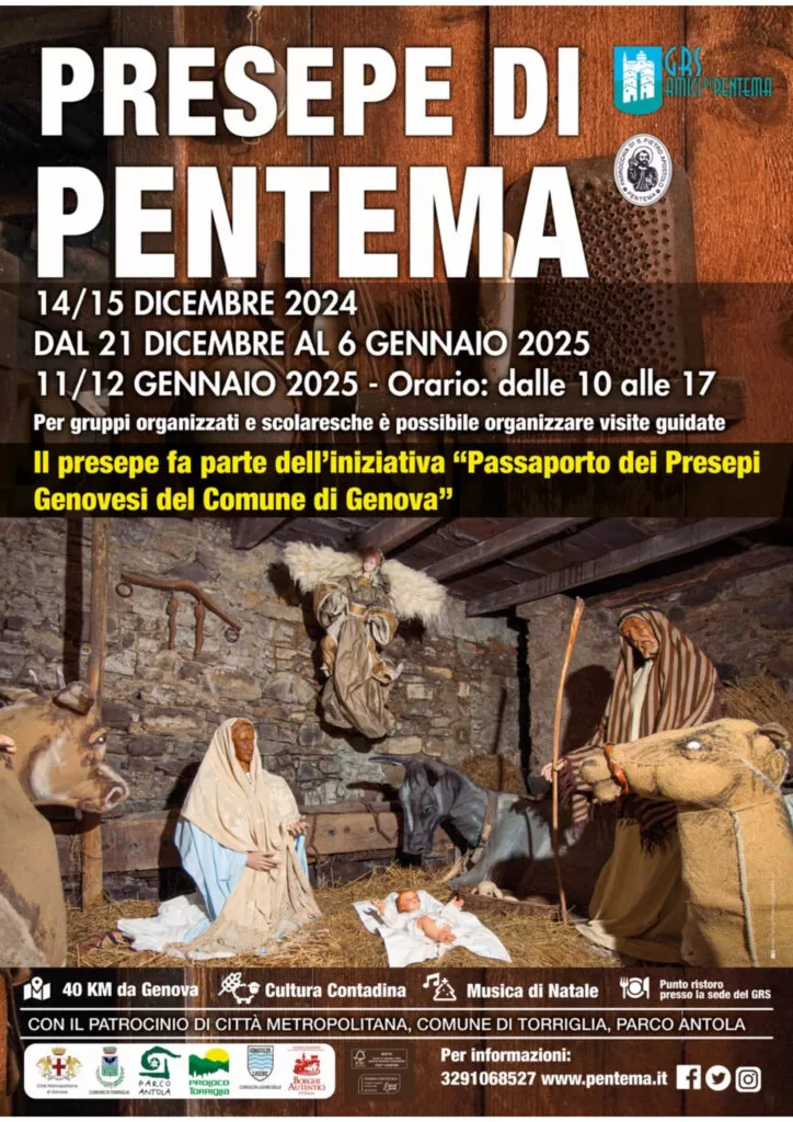 Il presepe di Pentema, frazione di Torriglia, rappresenta uno dei presepi più tipici della nostra regione. Ai bambini piacerà di certo trascorrere un bel pomeriggio d’inverno girando per questo simpatico paesino del nostro entroterra.