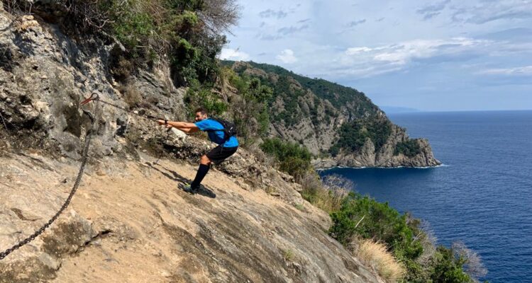 La premessa è dovuta: il tratto attrezzato del sentiero cosiddetto “delle catene”, tra le Batterie e San Fruttuoso di Camogli, non è adatto alle famiglie con bambini.
